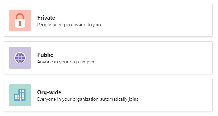 Org-wide teams are quite close to public teams because everybody can get the information shared in this team. Public teams offer the option for everybody to become a team member but you don’t need to join these kind of teams. They are intended for open communities and to support teamwork across departmental boundaries.